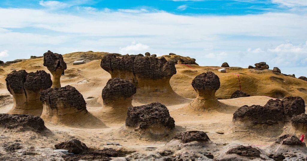 Yehliu Geopark is one of the Best Travel Spots in Taiwan for those fascinated by nature’s creativity. Stretching along the island’s rugged north coast, this unique geological park features wind- and sea-carved rock formations that resemble everything from mushrooms to candles. The most famous is the Queen’s Head, a slender stone column crowned by a rounded top, attracting photographers from all over the world.