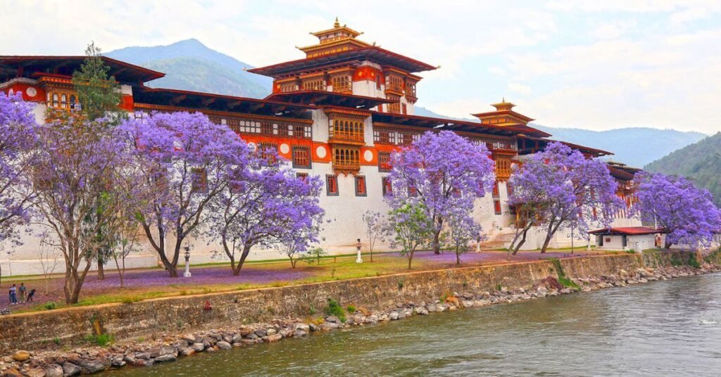 2. Punakha Valley – Rivers, Temples, and Purple Jacarandas